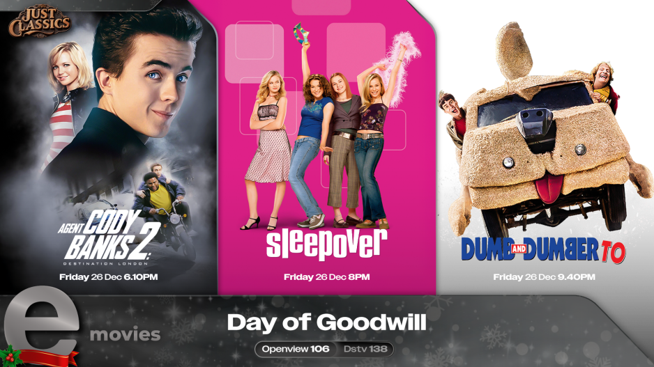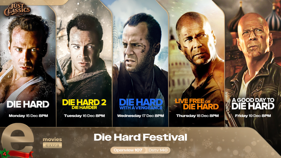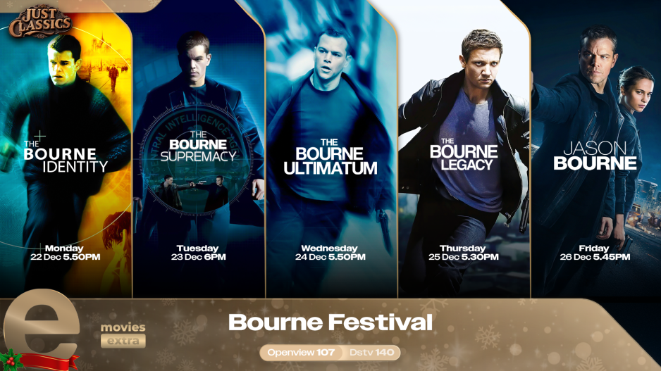 The Buzz . . . . . . . . . . . . . . . . . . . . e.tv Saturday & Sunday 8PM Kleva-ish Central Intelligence Mr. & Mrs. Smith White Chicks The Umbrella Men: Escape From Robben Island G.I. Joe: The Rise of Cobra G.I. Joe: Retaliation Snake Eyes: G.I. Joe Origins Christmas Themed Movies on eMovies Old Fashioned Christmas A Carol Christmas Farewell Mr Kringle Saving Christmas Merry Ex-Mas Christmas In Canaan Christmas For A Dollar A Bride For Christmas The Santa Incident A Christmas Song Hats Off To Christmas Saving Santa An En Vogue Christmas Christmas With Tucker The Heart of Christmas The Three Dogateers Save Christmas Naughty or Nice Christmas Visitor Our First Christmas Deck The Halls A Fairytale Christmas K-9 Adventures: A Christmas Tale A Royal Family Holiday A Christmas Puppy A Royal Family Christmas Shelby The Perfect Holiday Shrek Festival Shrek Shrek 2 Shrek Forever After Legally Blonde Legally Blonde Legally Blonde 2: Red, White and Blonde The Kingsman Festival on eMovies Extra Kingsman: The Secret Service Kingsman: The Golden Circle The King's Man Die Hard Festival on eMovies Extra Die Hard Die Hard 2 Die Hard With A Vengeance Live Free or Die Hard A Good Day to Die Hard 90s Classics Matilda Richie Rich Featuring Denzel Washington The Equalizer The Equalizer 2 Bourne Festival The Bourne Identity The Bourne Supremacy The Bourne Ultimatum The Bourne Legacy Jason Bourne 31 Days of Christmas Just My Luck Mark and Russells Wild Ride Nine Lives Radio Rebel Little Dinotopia - The Outsiders Major Movie Star Imagine That Meet Dave 16 Wishes Norbit Dinotopia 2: The Election Creed Festival on eMovies Extra Creed Creed II Creed III